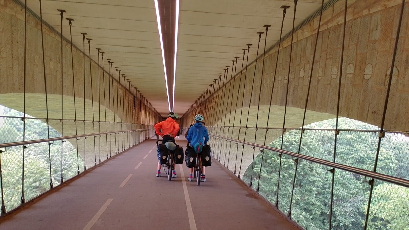 Unsere Route entstand spontan und sehr intuitiv. Eine grobe Idee der Richtung war zwar vorhanden, die Etappenlänge, die Anzahl Höhenmeter, die Pausenorte sowie die Übernachtungsplätze definierten wir willkürlich. Die Einkaufsmöglichkeiten sowie eine Kühlmöglichkeit für das Insulin schränkten die Auswahl der Rastplätze ein. Daher verbrachten wir unsere Nächte eher ungern auf diversen Campingplätzen, damit das Insulin über Nacht im Kühlschrank gelagert und das Kühlelement im Gefrierfach für den nächsten warmen Tag optimal aufbereitet werden konnte. Das Navigations-App Komoot diente uns zum Finden von geeigneten (aber auch eher ungeeigneten;-) ) Fahrradwegen. Auf unserem Weg legten wir insgesamt 2’500km Fahrradkilometer zurück, fuhren über losen und festen Untergrund, genossen abwechslungsreiche Fahrten über unglaubliche Brückenkonstruktionen, verkürzten die Strecke mit wenigen Fährfahrten, die uns über kleine Flüsse und grosse Meere führten.
